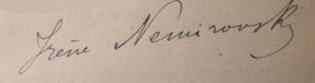 Née le 24 février 1903 à Kiev. En 1917, lorsque la révolution éclate, la famille s'exile en France ou Irène Némirovsky reprend ses études et obtient une licence de lettre en 1926 à la Sorbonne. En 1926, à la mairie du XVIe arrondissement, puis à la synagogue de la rue de Montevideo, Irène Némirovsky épouse Michel Epstein, un ingénieur russe émigré devenu banquier, dont elle aura deux filles : Denise, en 1929 et Élisabeth, en 1937. En 1938, elle rejoint ses filles dans le Morvan ou elle sera finalement arrêtée devant ses filles par les gendarmes. Décédée à Auschwitz, Pologne en août 1942.