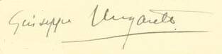 Né le 8 février 1888 à Alexandrie (Égypte). Il étudia pendant deux ans à la Sorbonne à Paris. En 1915, il s'engage comme volontaire dans l'Infanterie. À partir de 1936, Ungaretti vit au Brésil ; il y reste jusqu’en 1942 et enseigne à l’Université de Sao Paulo. Il enseignera ensuite à Rome la littérature italienne contemporaine jusqu'en 1959. Il est mort le 2 juin 1970 à Milan.